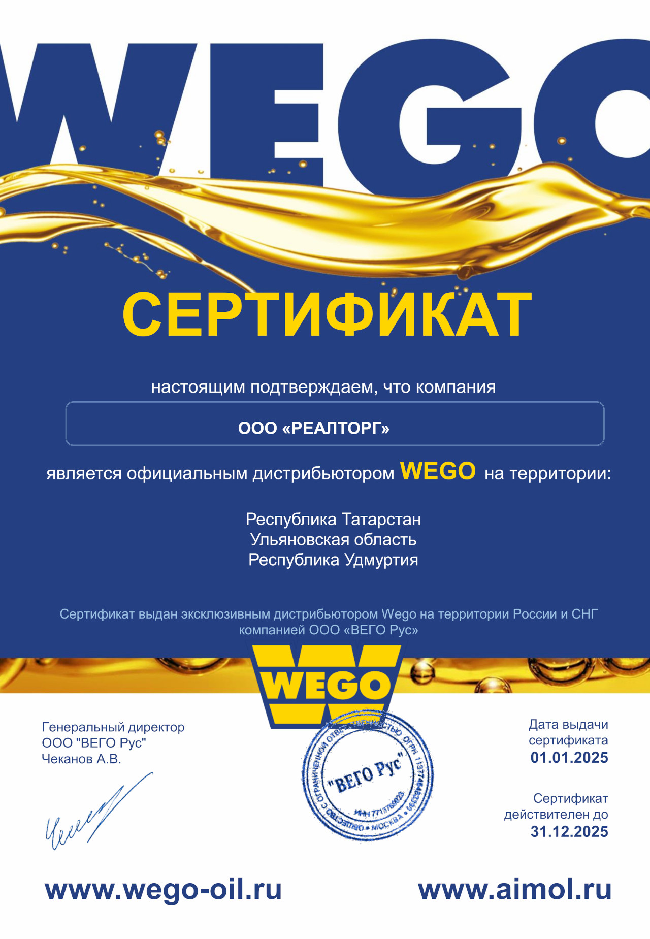ООО «Реалторг» - компания-дистрибьютор смазочных материалов